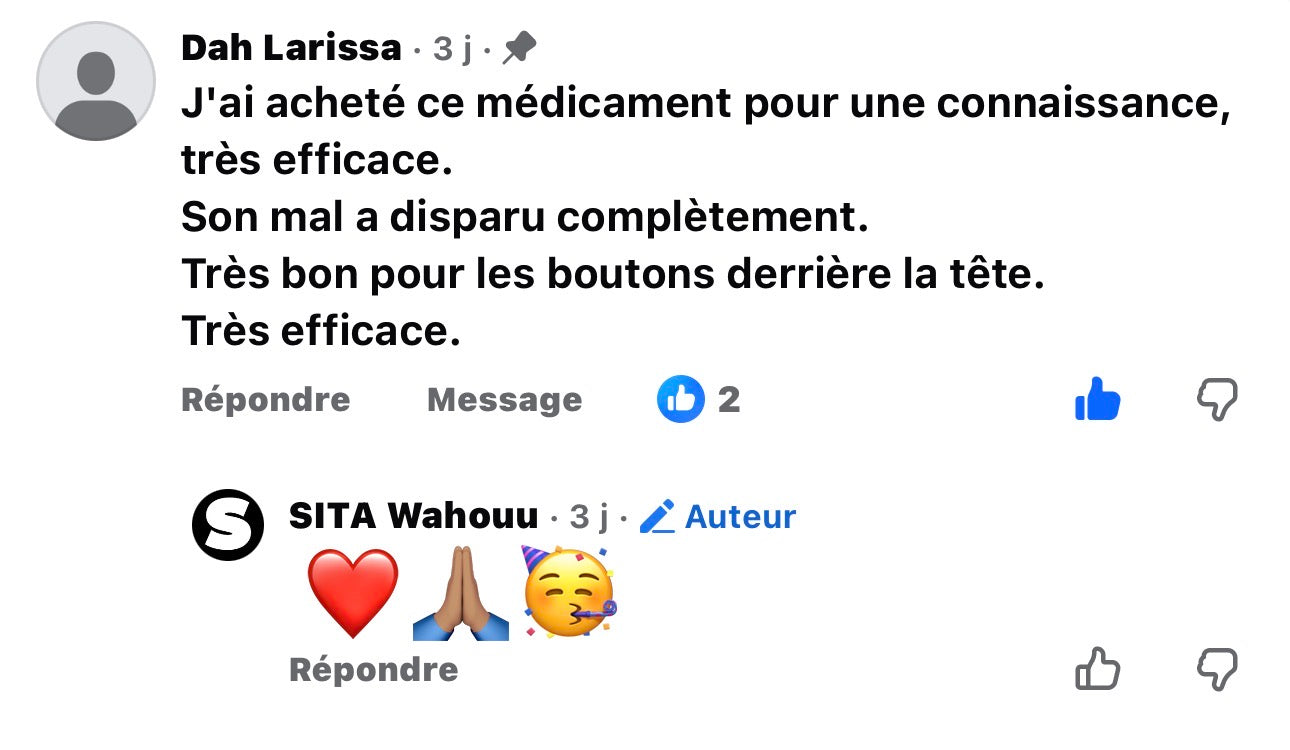 Après achat , il y’aura un guide d’utilisation du produit et un suivi jusqu’à votre guérison complète.