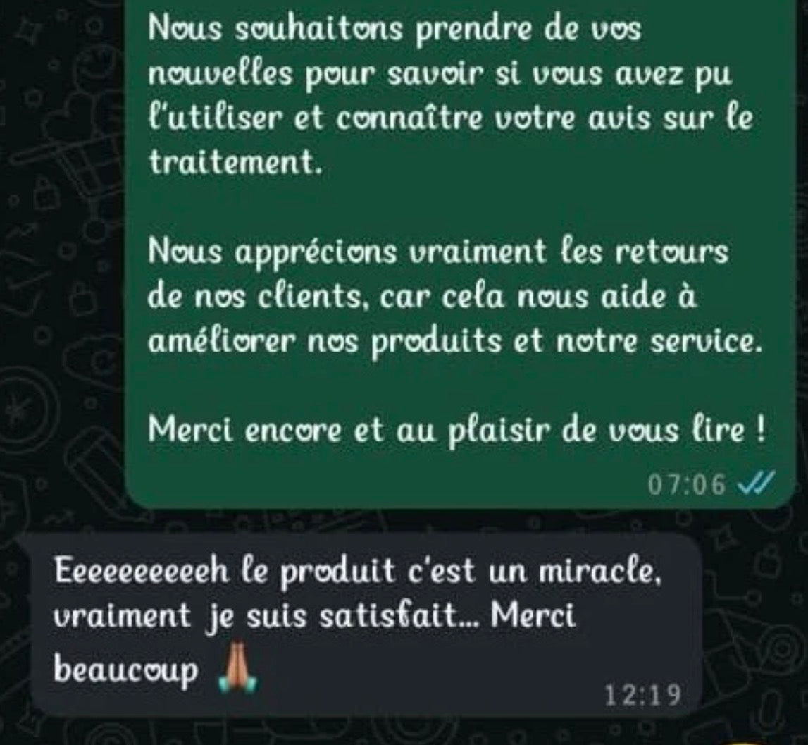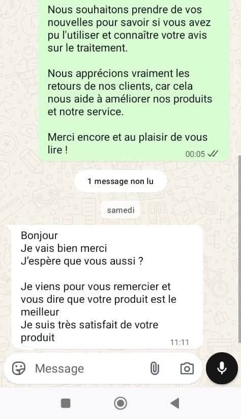 Après achat , il y’aura un guide d’utilisation du produit et un suivi jusqu’à votre guérison complète.