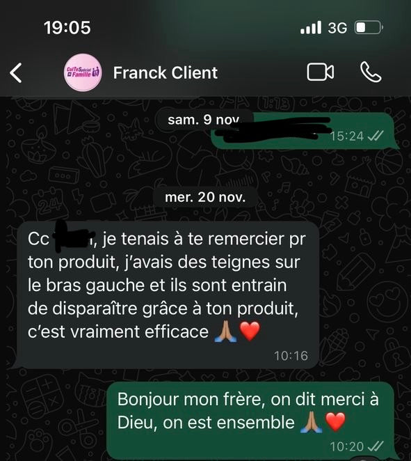 Franchement je ne croyais plus trop aux crèmes. J’ai déjà essayé beaucoup de choses sans succès. Mais après quelques jours avec Anti-Teigne™, j’ai vu une nette amélioration. Les plaques ont commencé à disparaître et ça ne gratte presque plus. Je suis vraiment satisfait.